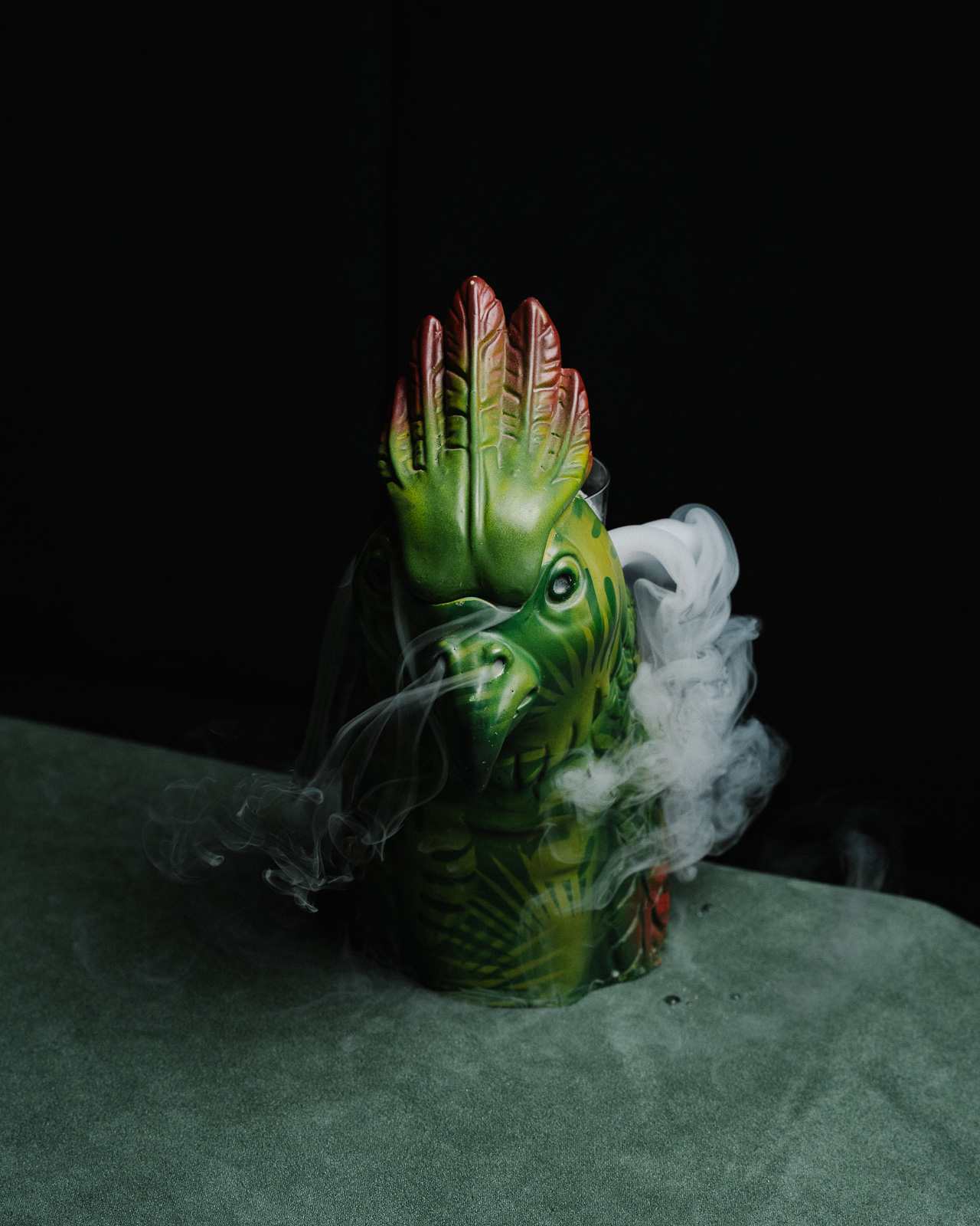 El legendario Ave Fénix renace de una fusión tropical innovadora y creativa.Un cocktail con Tequila Mijenta Blanco y Mezcal Espadín, fruta de la pasión, vainilla, y su huevo místico: un bombón verde que, al quebrarse, revelará un corazón de chocolate, intensificando la dulzura de cada sorbo.